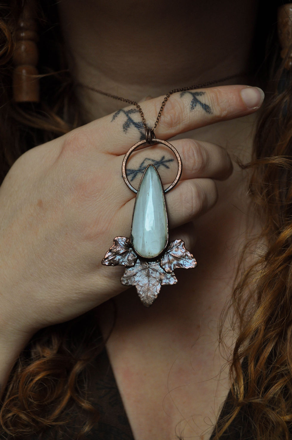 - L'ensemble est fait de cuivre. Une fois la création terminée, j'applique une huile de protection. Elle protège les bijoux du ternissement et de la corrosion. Résistante à l'humidité.