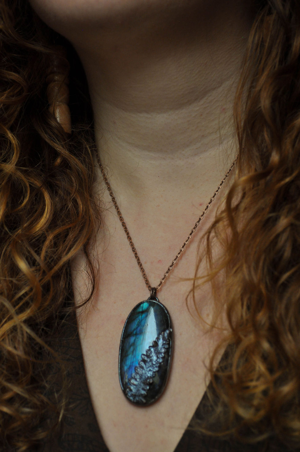Larme de strygge - Labradorite à reflets, fougère, cuivre